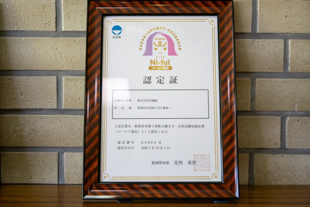 この度、新潟県様よりNi-ful(ニーフル)ゴールド企業として認定していただきました。