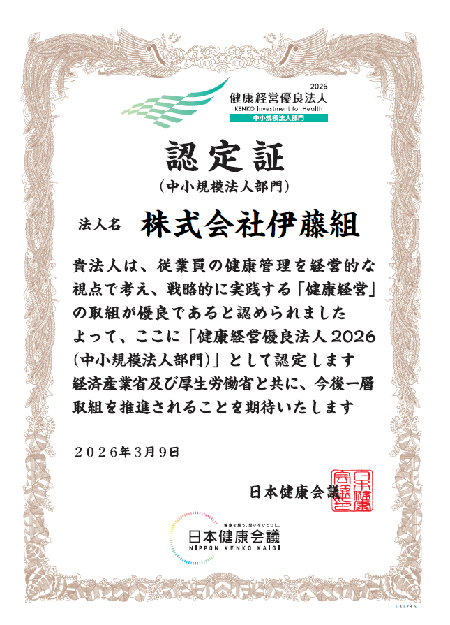 このたび弊社は、「健康経営優良法人2026」の認定を受け、3年連続での認定となりました。